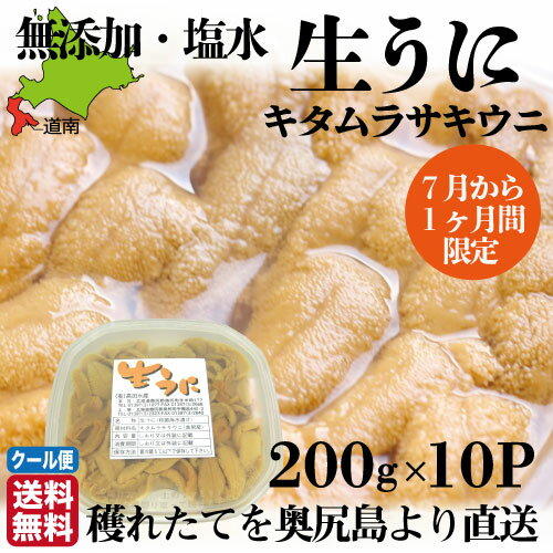 予約開始 超お得10パック【1ヵ月限定 奥尻島うに 】うに 北海道 ミョウバン不使用 高級 天然生うに 島ウニ塩水パック 2000g(200g×10パック) キタムラサキウニ 塩水うに 国産 雲丹 高級 海鮮 海鮮丼 お中元 ギフト【高田水産】送料無料 産地直送 産直 クール便 お土産 贈り物